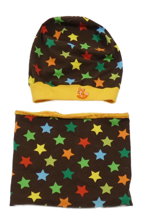 2sest - Hnědá čepice s hvězdami + nákrčník