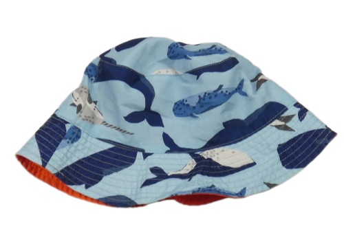 Světlemodrý oboustranný klobouk s velrybami