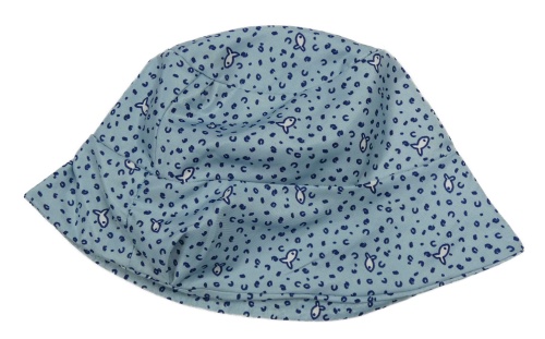 Světlemodro-tmavomodrý vzorovaný klobouk s rybkami
