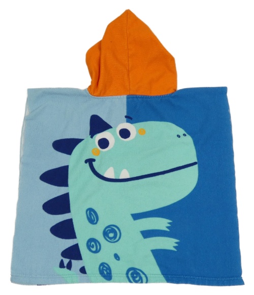 Modro-světlemodro-oranžová froté pončo osuška s dinosaurem a kapucí