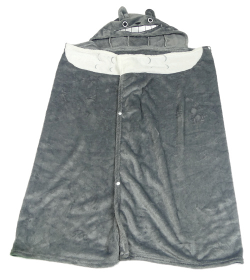 Šedo-bílá chlupatá zavinoavací deka s čumákem a kapucí
