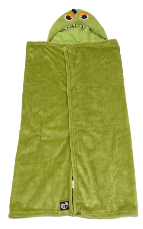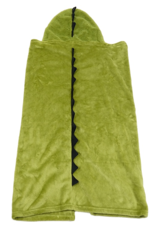 Zelenoolivová plyšová zavinovací deka s kapucí - příšerka