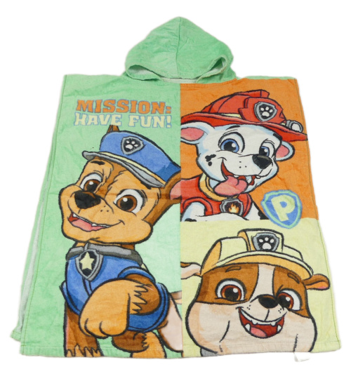 Zeleno-oranžovo-světležlutá froté pončo osuška s PAW PATROL a kapucí PRIMARK