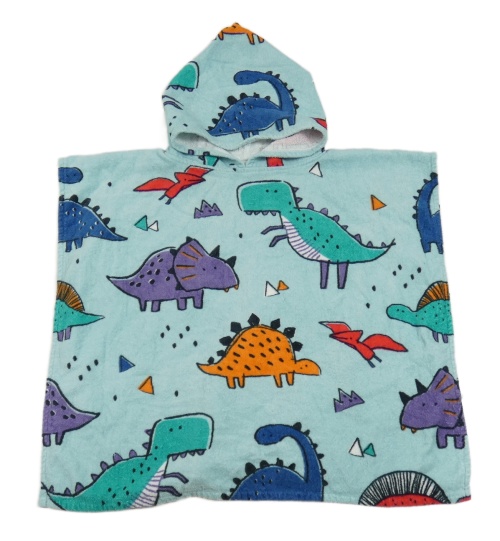 Světlemodré froté osuškové pončo s dinosaury a kapucí George