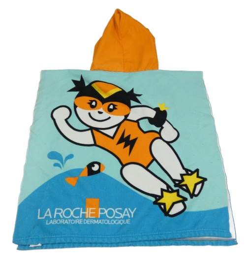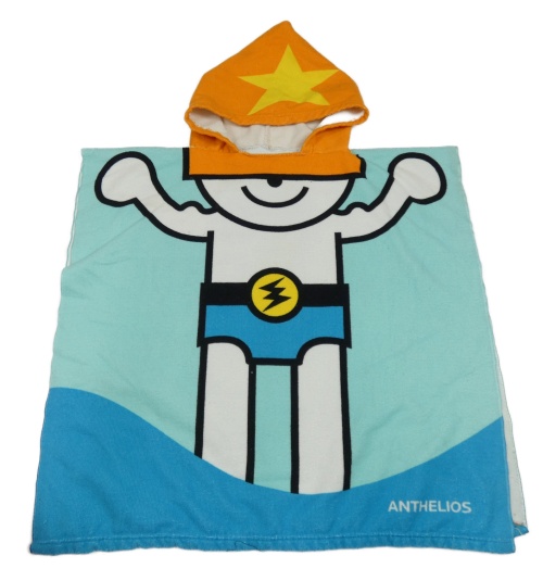 Modro-oranžové froté osuškové pončo s panáčkem a kapucí