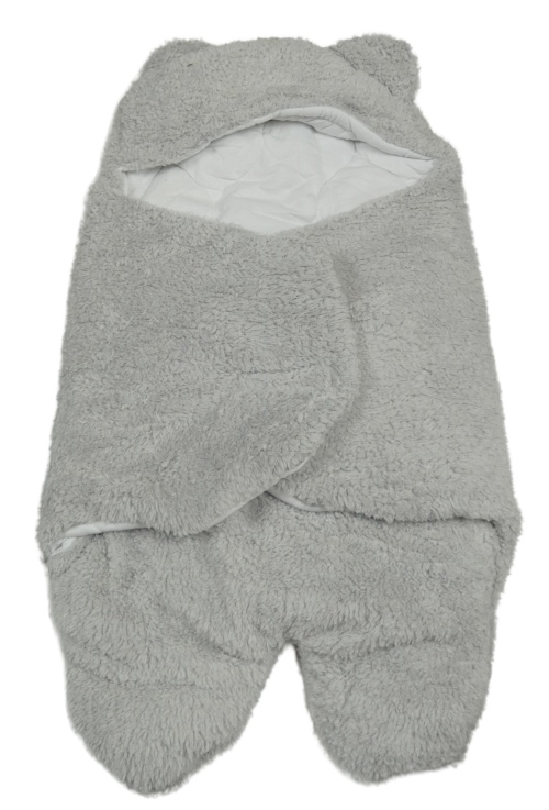 Šedá chlupatá zavinovací deka do autosedačky