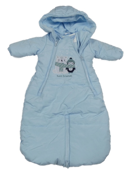 Světlemodrý šusťákový zateplený fusak s obrázkem a kapucí