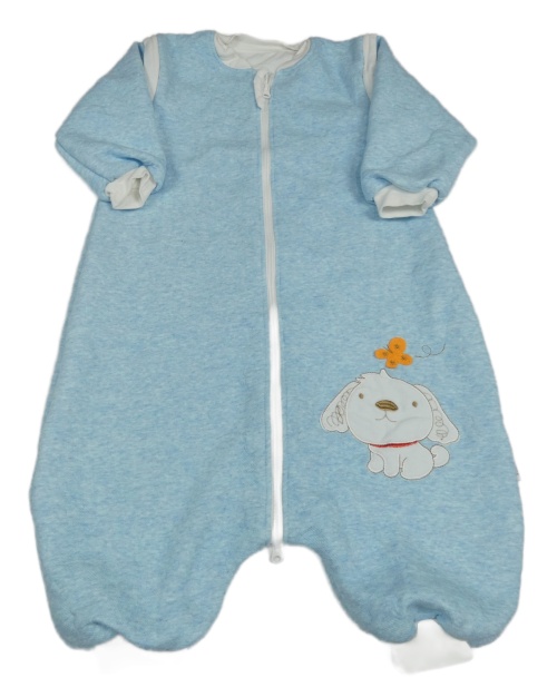 Světlemodrý melírovaný zateplený spací pytel s pejskem a rukávy