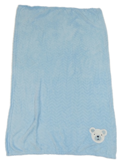 Světlemodrá vzorovaná chlupatá deka s medvědem