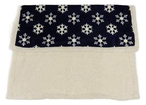 Tmavomodro-bílá plyšovo/huňatá deka s vločkami