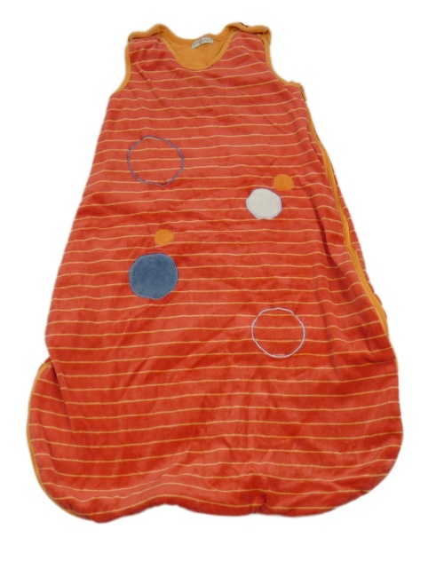 Červený pruhovaný sametový spací pytel s puntíky