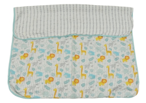 Bílo-šedo-světlemodrá vzorovaná bavlněná deka se zvířátky