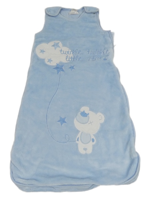 Světlemodrý chlupatý zateplený spací pytel s medvědem