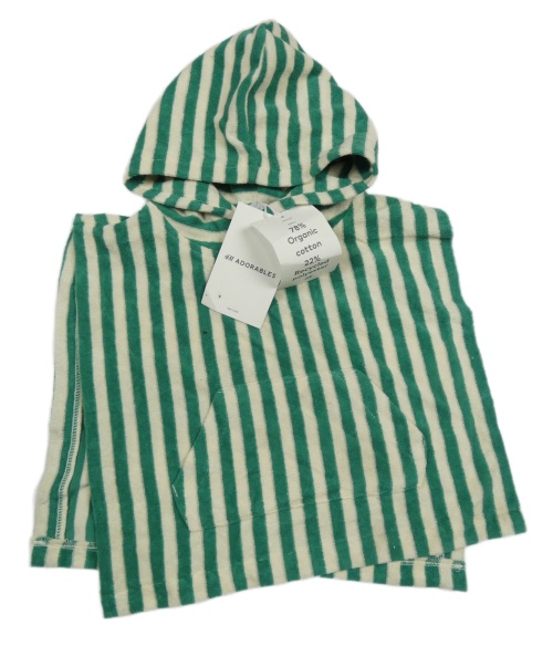 Nové - tmavozeleno-smetanová pruhovaná froté pončo osuška s kapsou a kapucí H&M