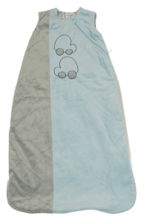 Modro-šedý plyšový lehce zateplený spací pytel s auty