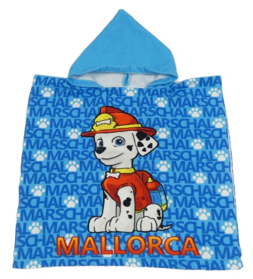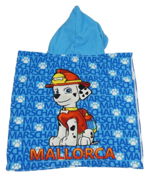 Modré vzorované osuškové pončo s Tlapkovou patrolou a kapucí