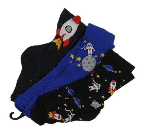 Nové - 3x ponožky - modro-černé s raketami
