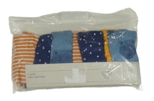 Nové - 7x slipy - 2x tmavomodré + 2x pruhované + 2x modré + 1x žluté