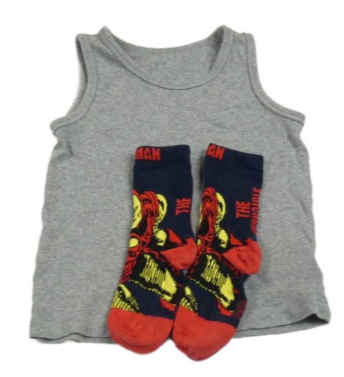 2 set - šedé tílko + tmavomodro-červené ponožky s Iron Manem