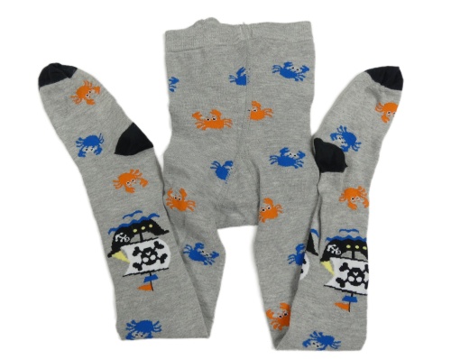 Šedé melírované punčocháče s kraby a pirátskými loděmi