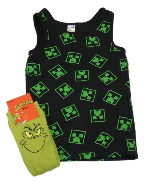 2set- černý nátělník s Minecraft+ zelené ponožky s Grinchem