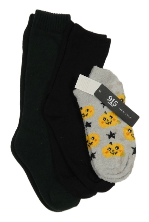 Nové - 3x ponožky - tmavozelené + černé + šedé chlupaté kotníkové s dýněmi