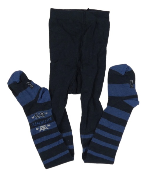 Tmavomodro-modré pruhované punčocháče s číslem a nápisem cool&young