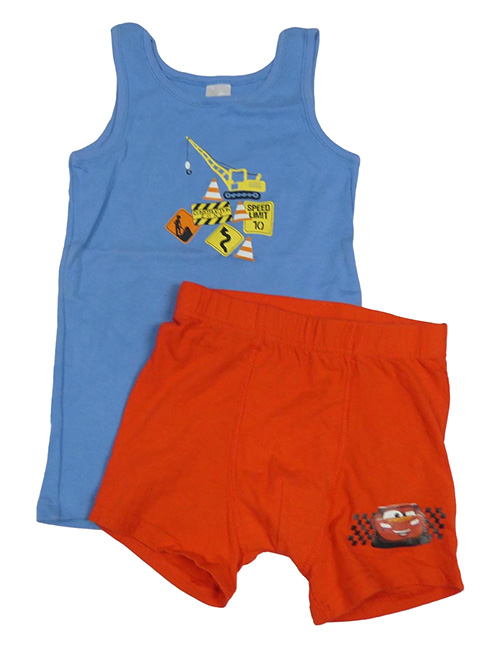 2set - Modrý nátělník se stavebními stroji + červené boxerky s Bleskem McQueenem