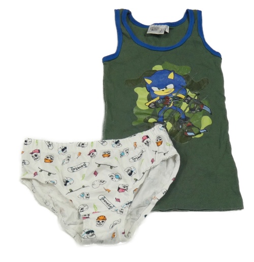 2set- khaki tílko se Sonicem+ bílé slipy s lebkami