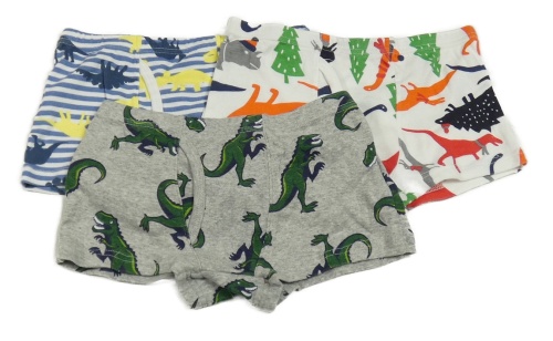 3x boxerky - šedé s diny + bílo-barevné + modré pruhované s diny