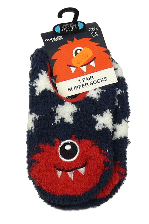 Nové - Tmavomodré chlupaté slipper ponožky s hvězdami a příšerkou Dunnes