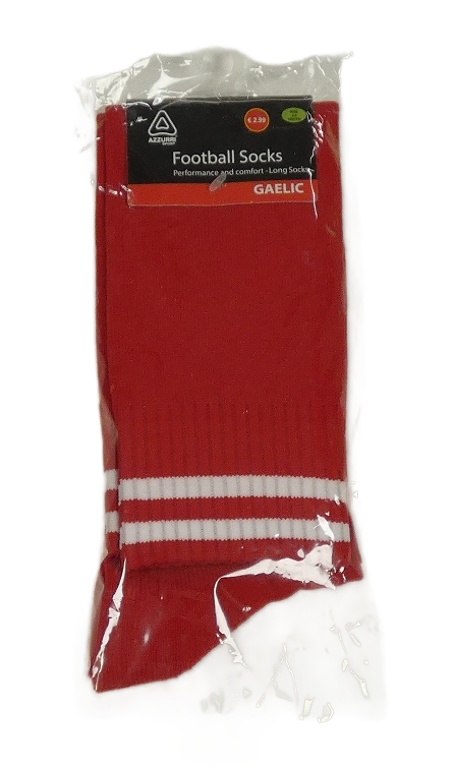 Nové - červené fotbalové štulpny s bílými pruhy vel. 34-37