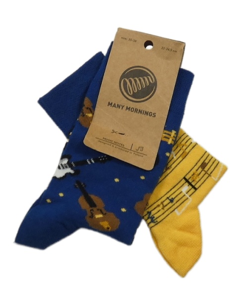 Nové - tmavomodré + žluté ponožky s hudebními nástroji