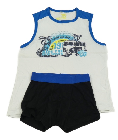 2 set - bílo-modré tílko s autobusem + černé boxerky