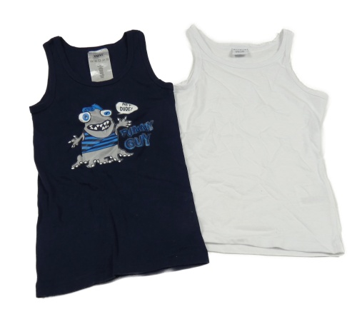 2x nátělník - bílý + tmavomodrý s příšerkou