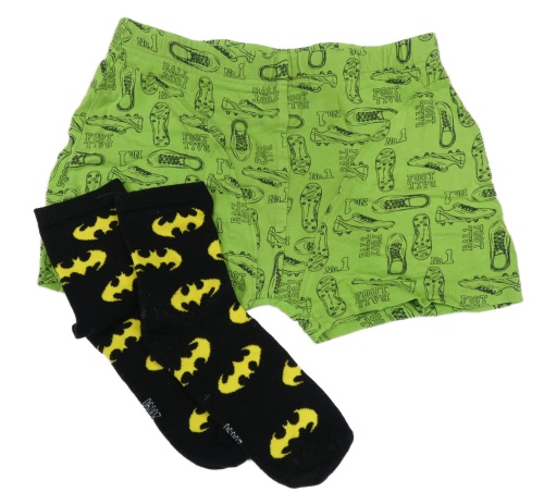 2set - Zelené boxerky s kopačkami + černé ponožky s logy Batmana