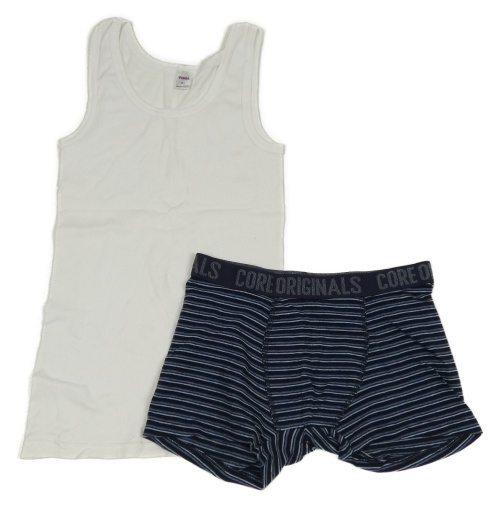 2Set - Bílý nátělník YIGGA + tmavomodro/modré pruhované trenýrky C&A