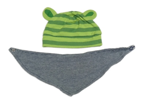 2set -Zelená pruhovaná mikina s oušky + tmavomodrý vzorovaný slinták