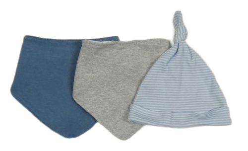 3set - 2x slinták - šedý + tmavomodrý + 1x modro-bílá pruhovaná čepice