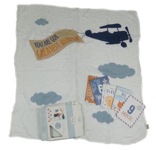 Nové - Bílá plena s letadlem + milníkové kartičky