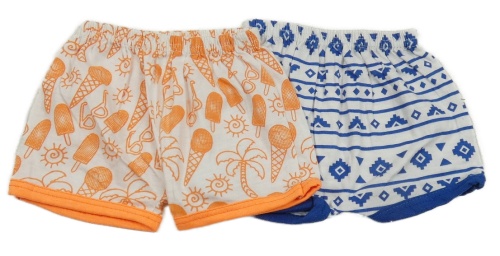 2set - 2x vzorované kraťasy - bílo-modré + bílo-oranžové