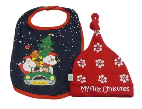 2set - Červená čepice + tmavomodro-červený bryndák s vánočním motivem