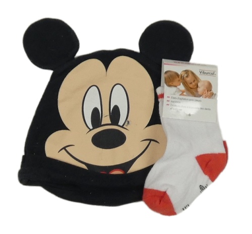 2 set - černá bavlněná čepice s Mickeym + bílo-červené ponožky