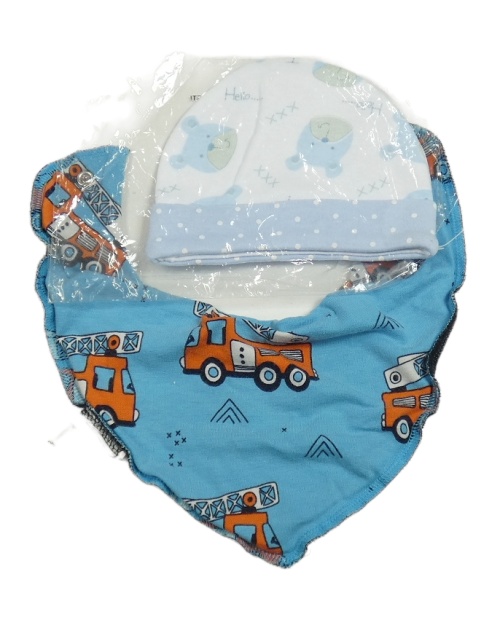 Nové - 2 set - bílo-modrá čepice s medvídky + slinták s hasiči