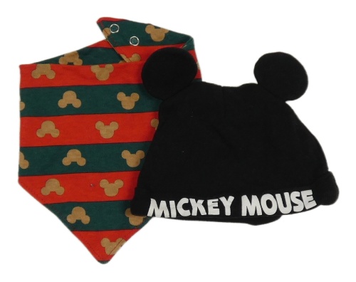 2 set - černá čepice s nápisem - Mickey + červeno-zelený pruhovaný slinták
