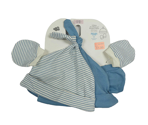 Nové - 4 set - 2x bílo-modrá čepice + bílo-modré pruhované rukavice Primark