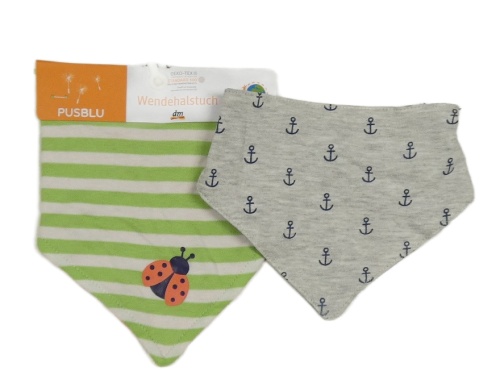 2x slinták - šedý melírovaný s kotvami + zeleno-bílý pruhovaný s beruškou
