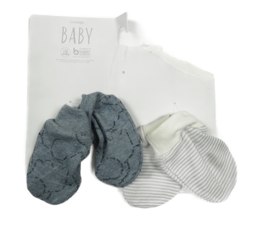Nové - 2x rukavičky - modré melírované s nápisy + šedo-bílé pruhované George