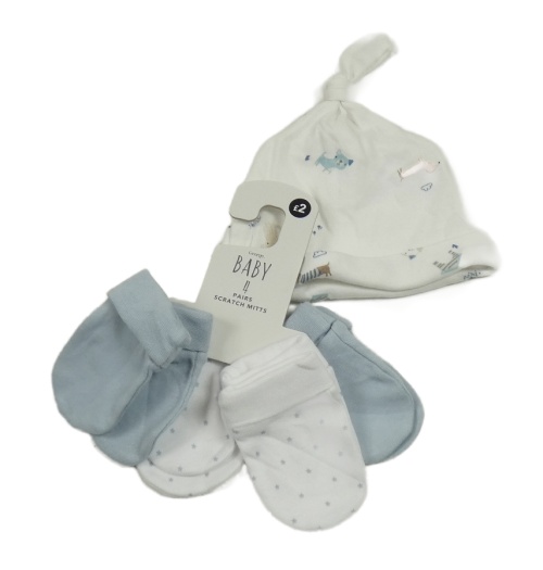 5set - Bílá čepice s pejsky + 4x modro-bílé rukavice- nové