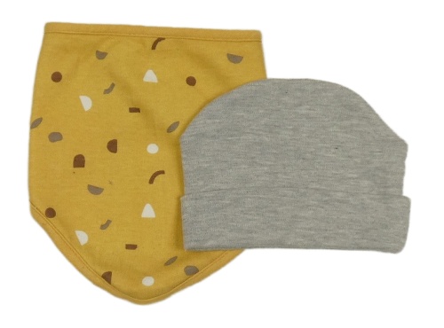 2set - Šedá čepice + okrový slinták se vzorem
